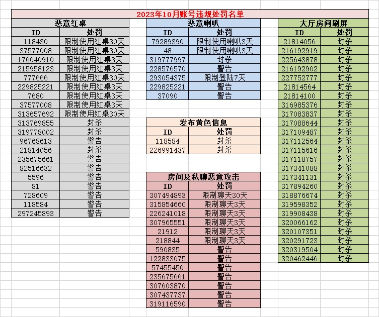 账号违规处罚公告(2023年10月)